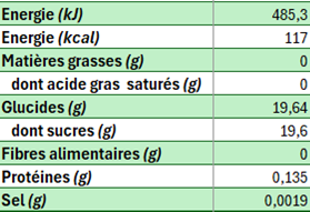 Valeurs nutritionnelles moyennes pour 100 ml :