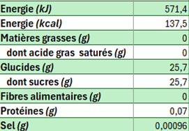 Valeurs nutritionnelles moyennes pour 100 ml :