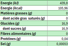 Valeurs nutritionnelles moyennes pour 100 ml :