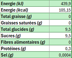 Valeurs nutritionnelles moyennes pour 100 ml :