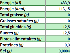 Valeurs nutritionnelles moyennes pour 100 ml